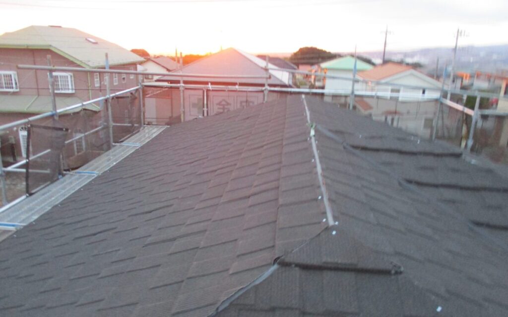 すべての工程が完了し屋根のカバー工法工事が無事仕上がりました。これで屋根材の落下や飛散の心配もなくなり今後は長期間安心してお住まいいただけます。
