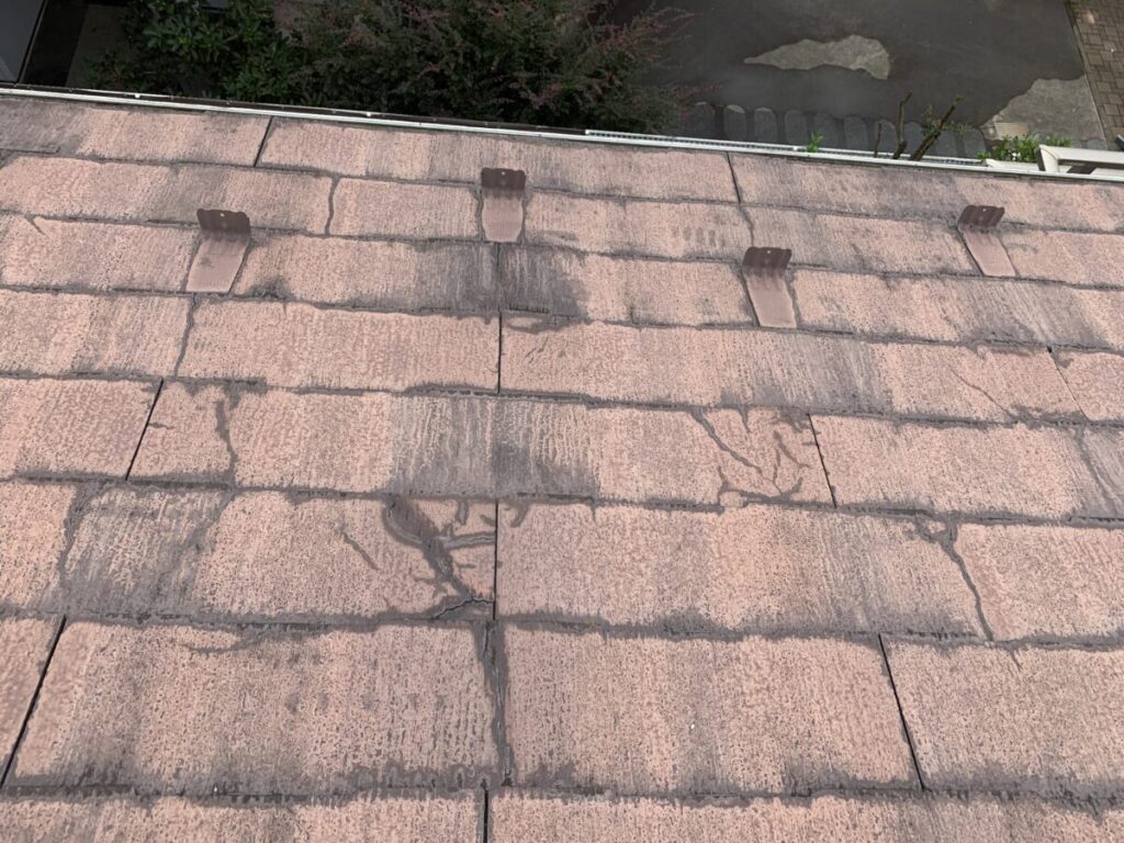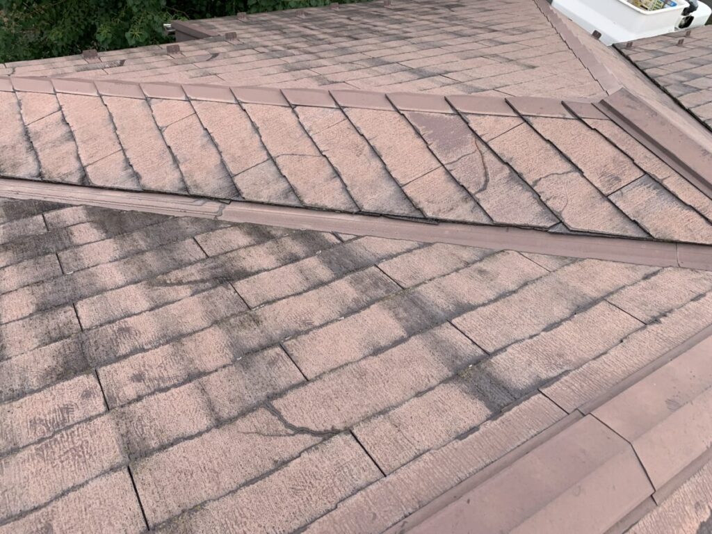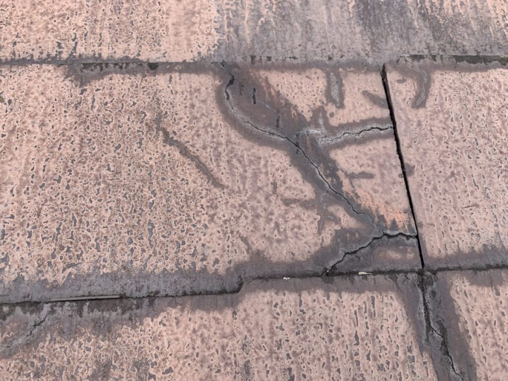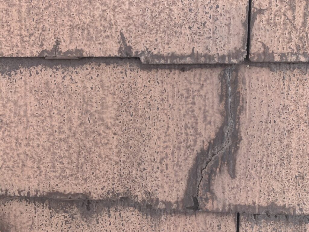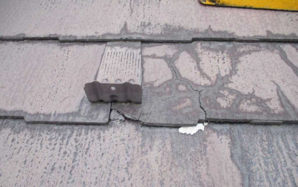 今回、「屋根材の破片が落ちてくるので心配」とのご相談をいただき、屋根診断のため現地調査に伺いました。実際に屋根へ上がって確認すると、使用されていた屋根材は コロニアルNEO(クボタ/現ケイミュー製)。2001年~2008年頃まで採用されたスレート屋根材ですが、現在は廃盤となっている製品です。コロニアルNEOは、アスベスト規制後の「ノンアスベスト初期世代」の屋根材に分類され、当時は軽量で施工性に優れる一方、経年劣化による脆さ(割れ・欠け・層間剥離)が発生しやすいという特徴があります。今回の屋根も、実際に50箇所以上のひび割れや欠損が確認できました。このタイプの屋根材は 塗装すればするほど基材が傷み割れや破損が悪化する傾向にあります。塗装はあくまで美観の向上が目的で塗っても割れや崩れを止めることはできません。そこで今回は、既存屋根を撤去せずに上から新しい屋根材を施工する カバー工法(重ね葺き) をご提案しました。採用する屋根材は セネター(天然石粒付ガルバリウム鋼板屋根材) です。セネターは、