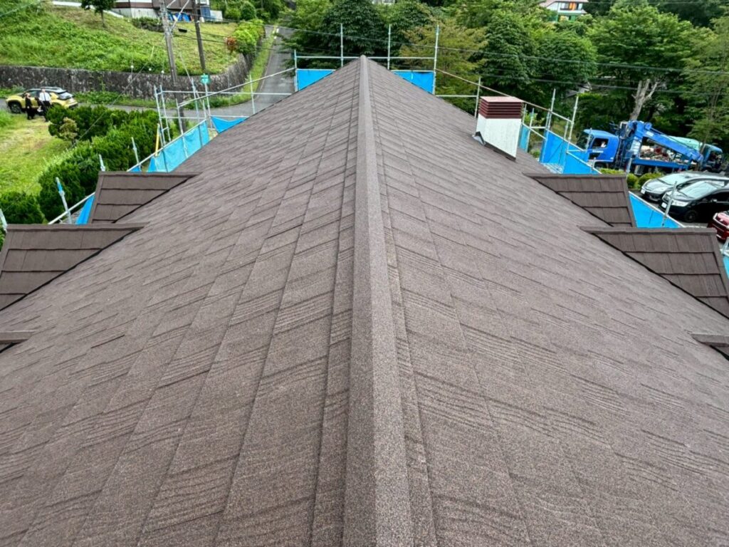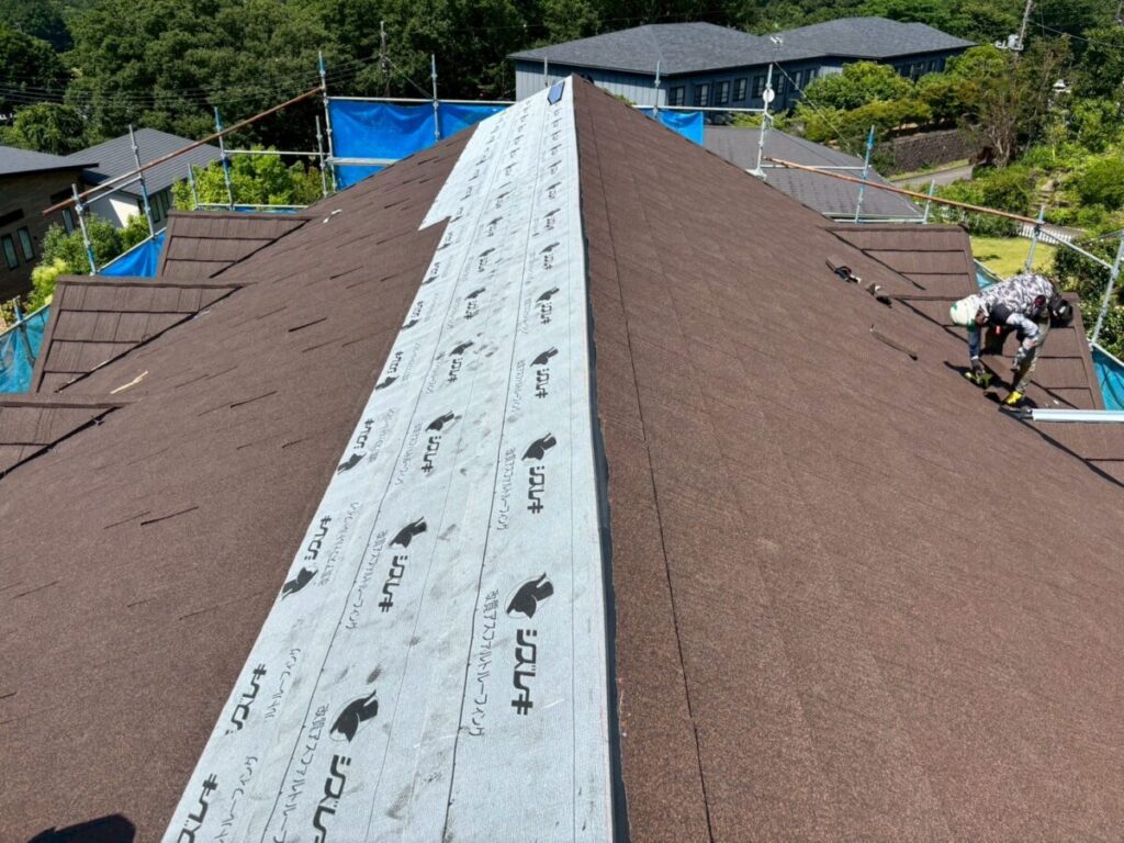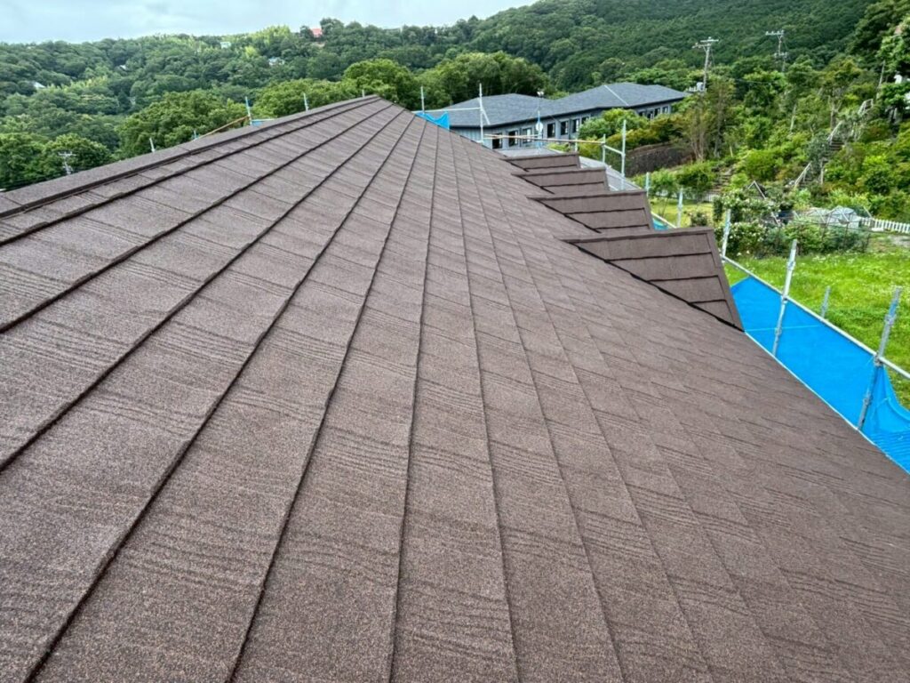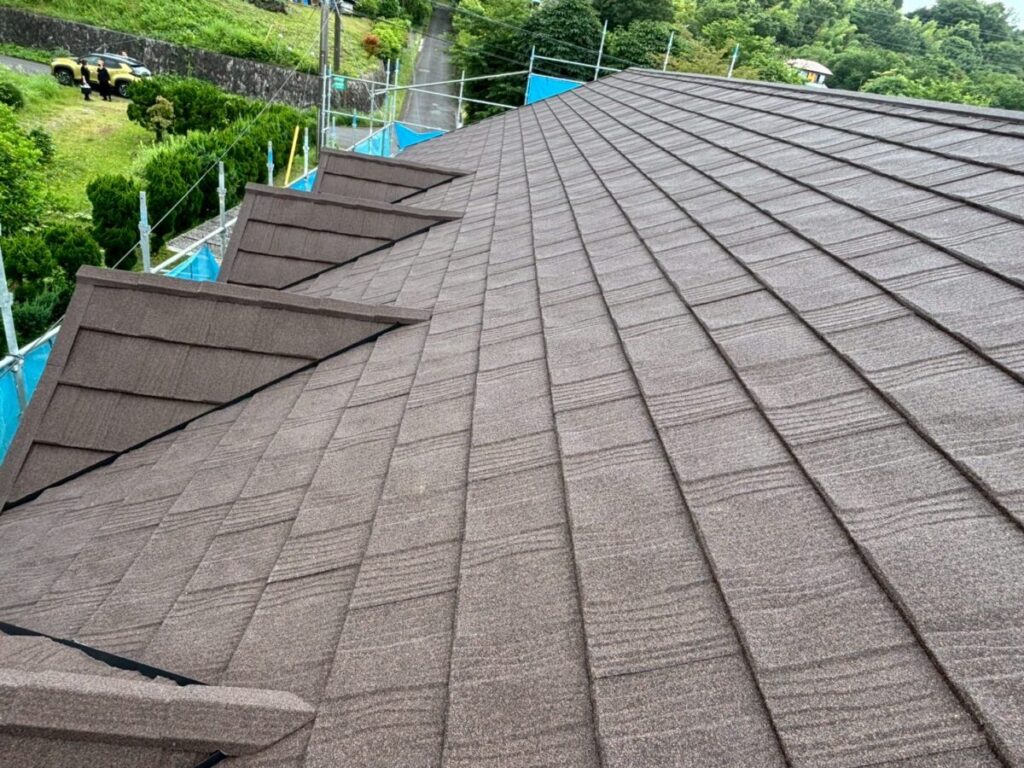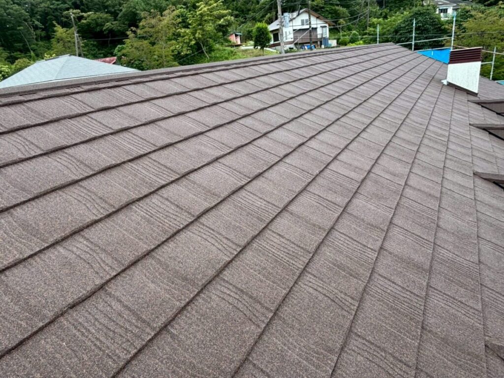 静岡県伊東市でアスファルトシングルの上にLIXILのT・ルーフ ヴェルウッドを重ね葺き工事を施工いたしました。