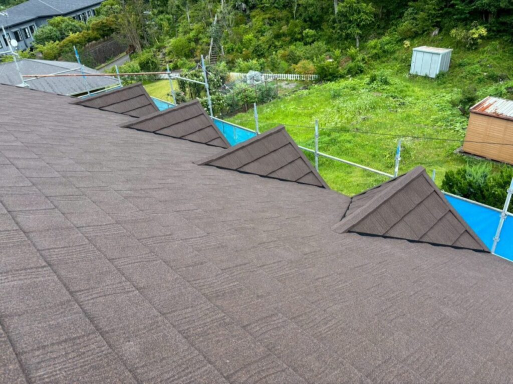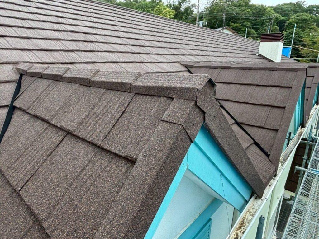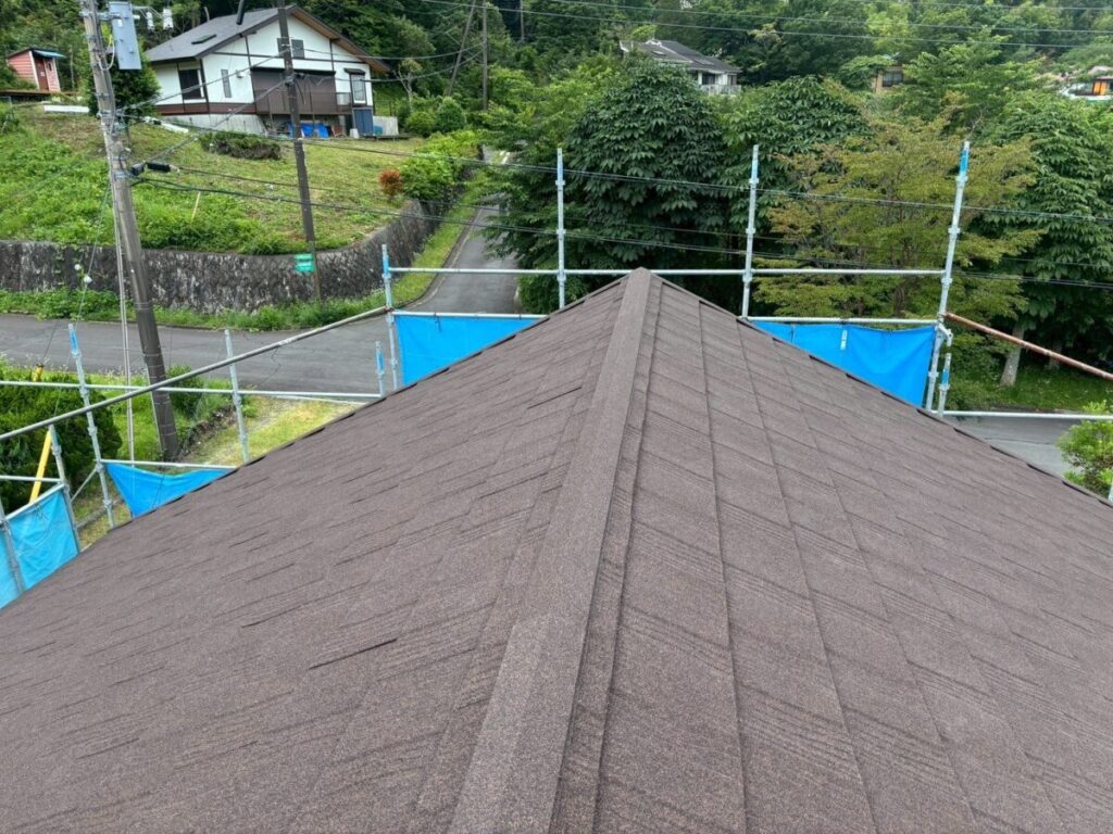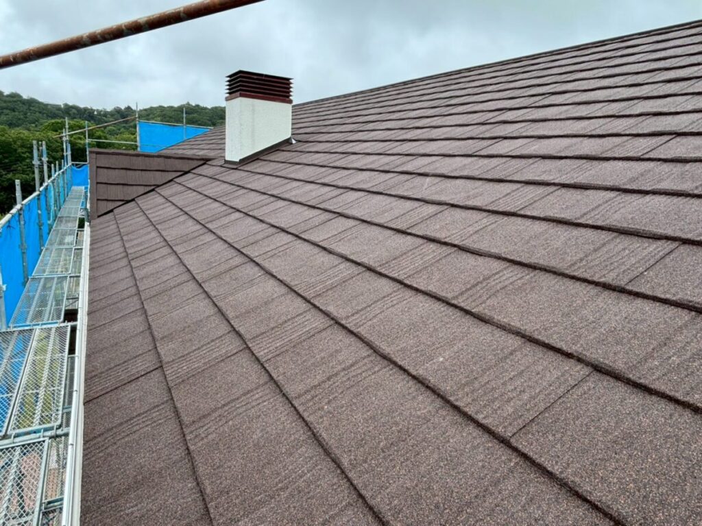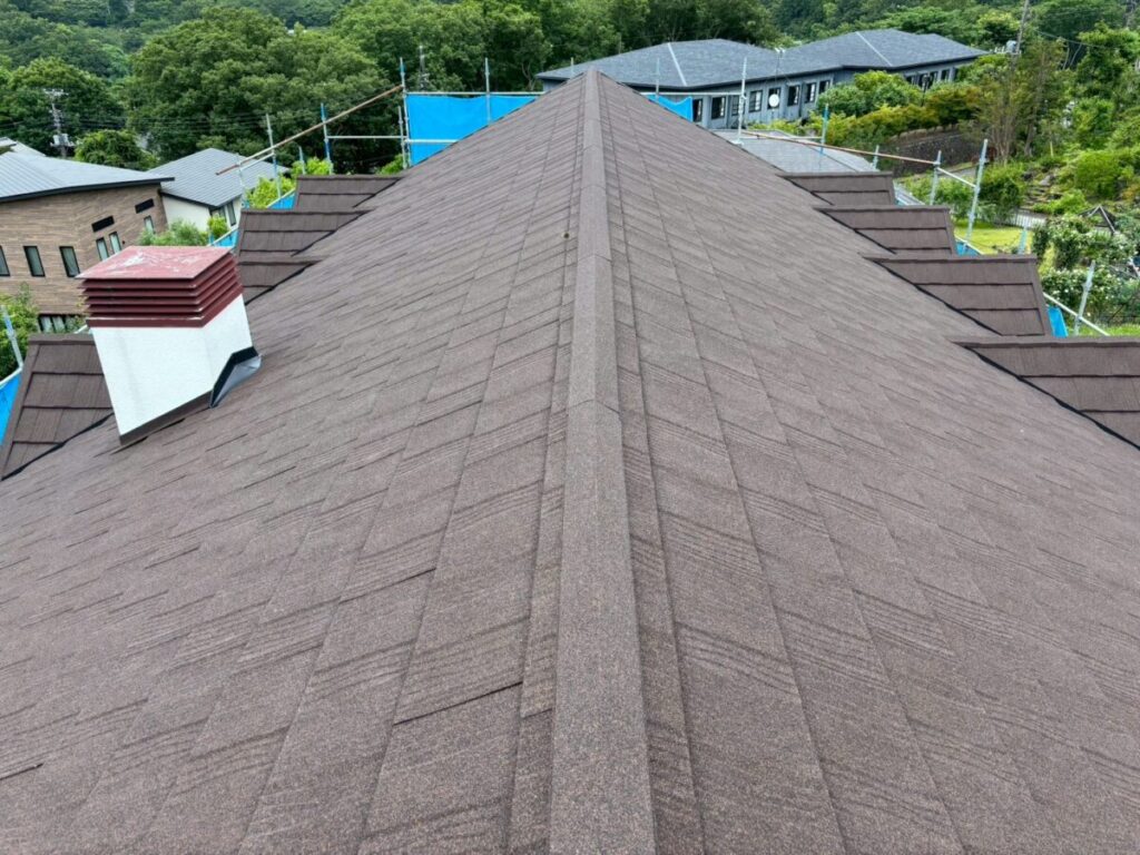 静岡県伊東市でアスファルトシングルの上にLIXILのT・ルーフ ヴェルウッドを重ね葺き工事を施工いたしました。