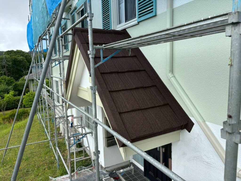施工が完了しましたので、収まりやビスの打ち忘れなどがないか、またお施主様にお渡しする工程写真の確認と完成写真の撮影を行なっていきます。色はブラウンを施工しましたが落ち着いた風合いのある仕上がりになりました。