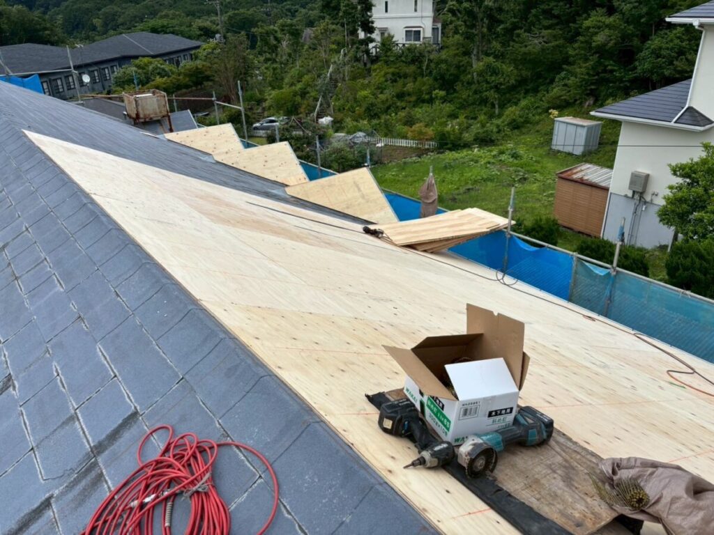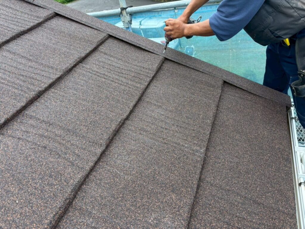 アスファルトシングル屋根に下地の補強をしてLIXILのT・ルーフ ヴェルウッドを重ね葺き工事施工工程