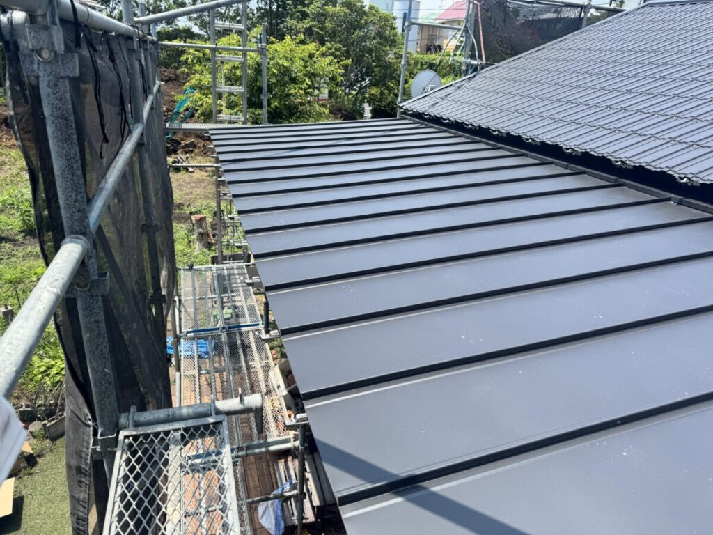 静岡県伊東市 雨漏りしている瓦葺屋根を撤去してレクトプルーフに、瓦棒葺きは撤去して立平葺きに葺き替え工事 スルガ住研施工