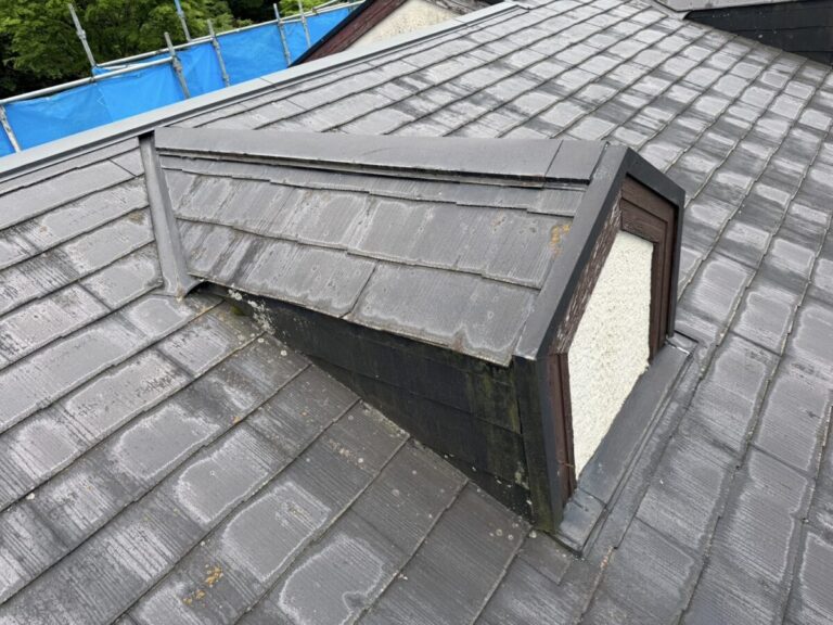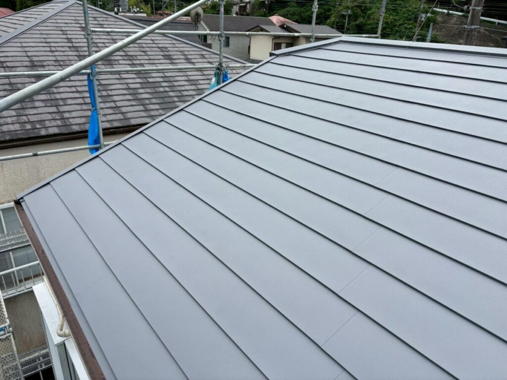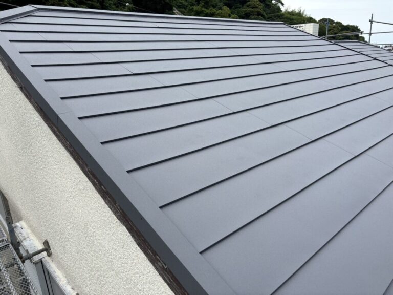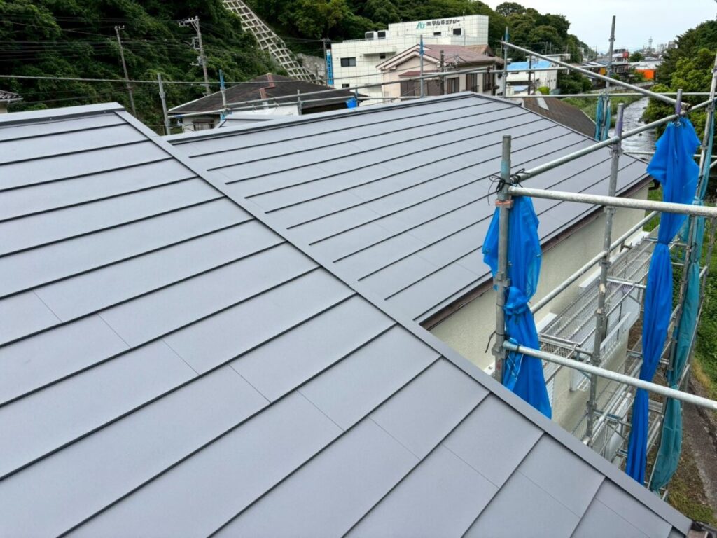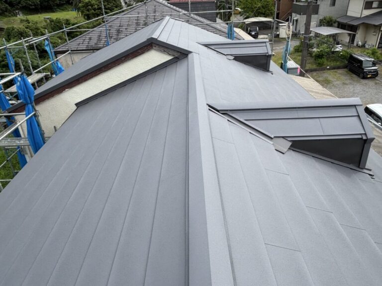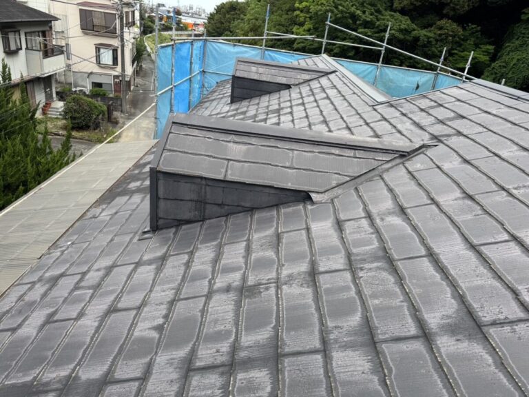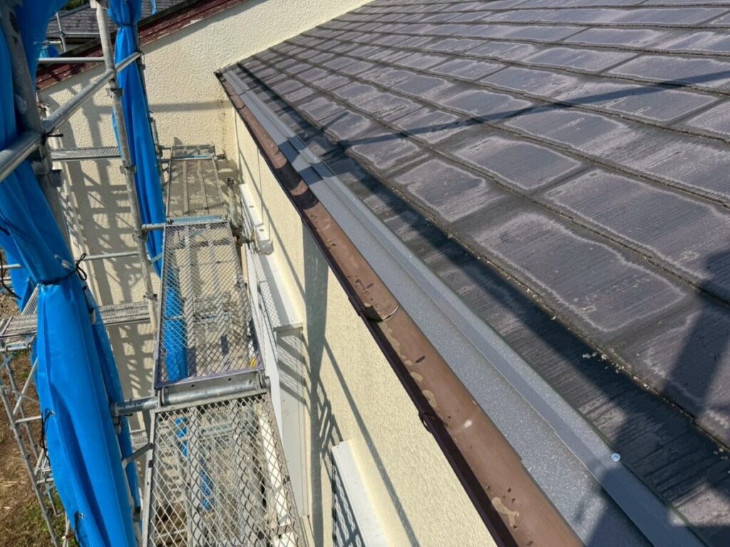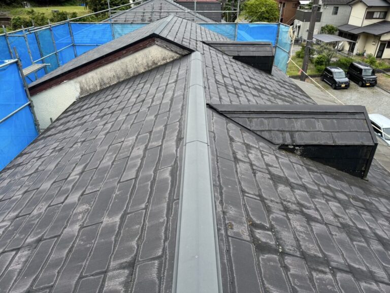 静岡県伊東市で化粧スレートの屋根にシルキーG2をカバー工法で施工しました。