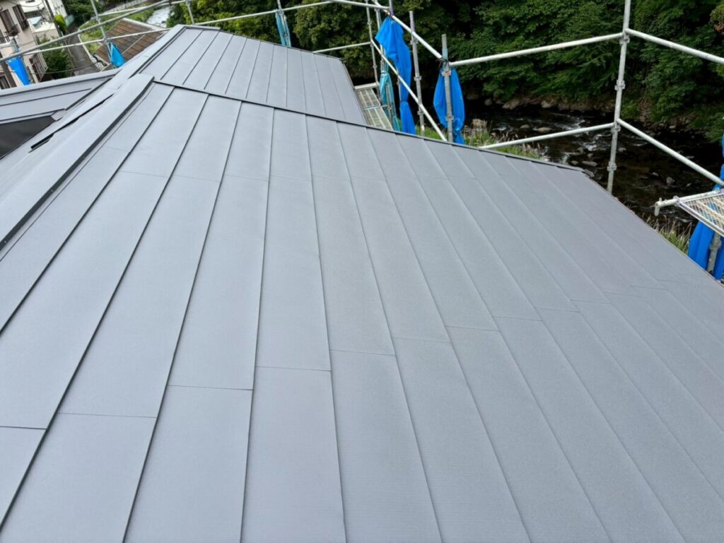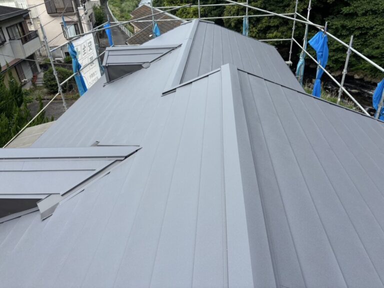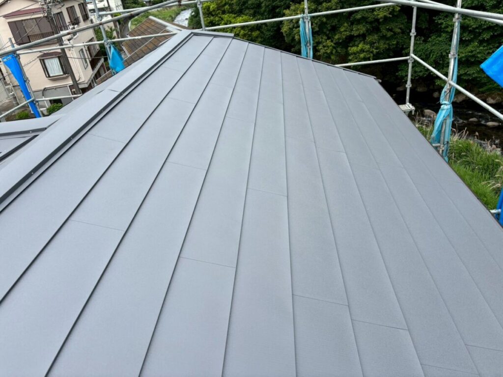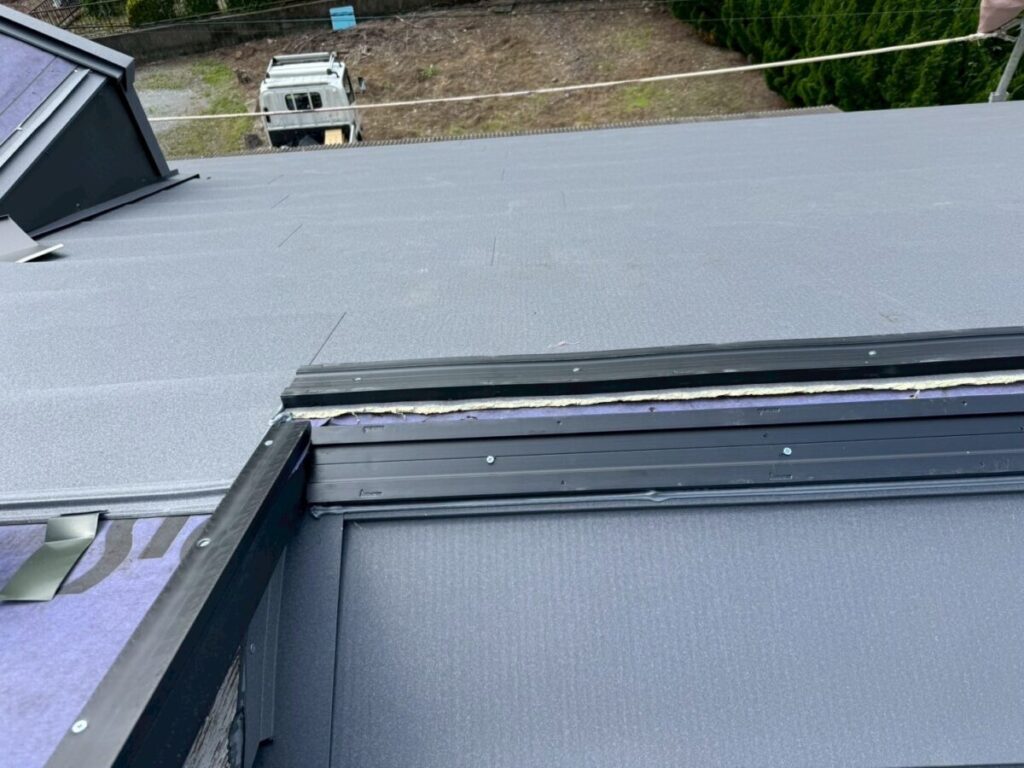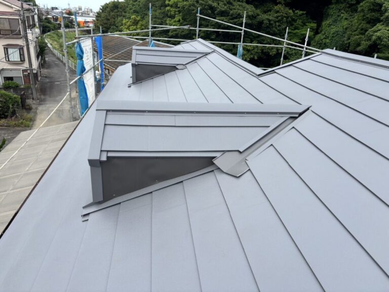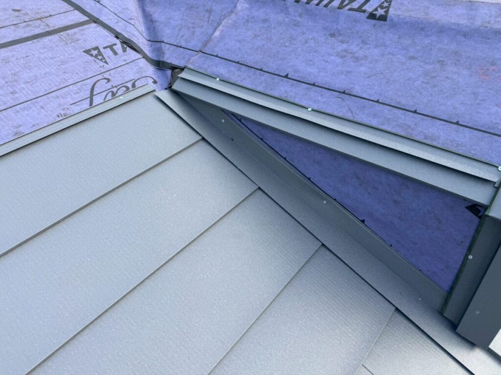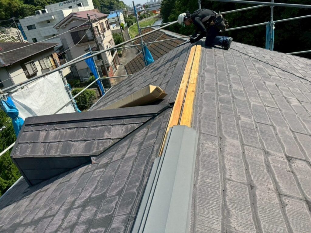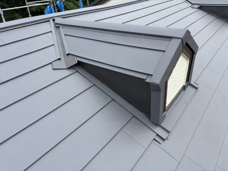 本体を張り合わせた頂上部分には棟を取り付けたら完成です。今回の色はギングロで施工しましたが落ち着いた高級感のある色です。
