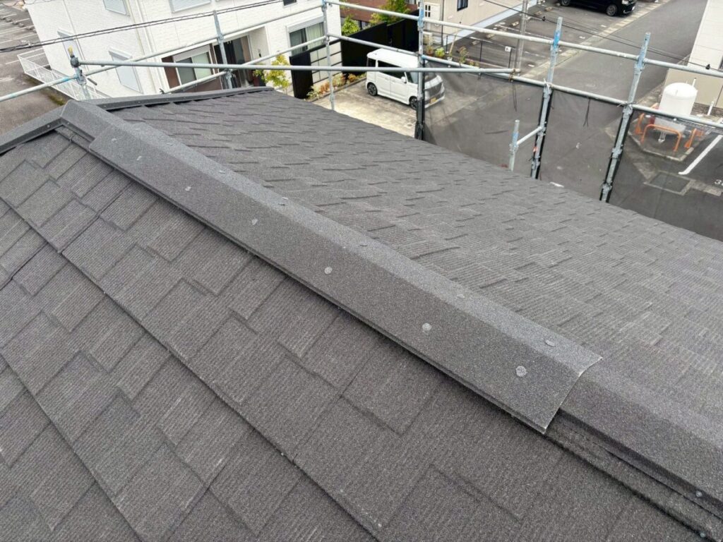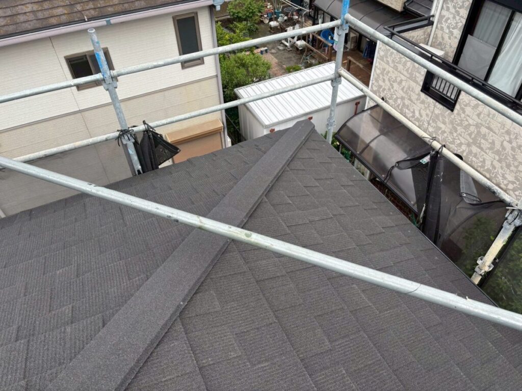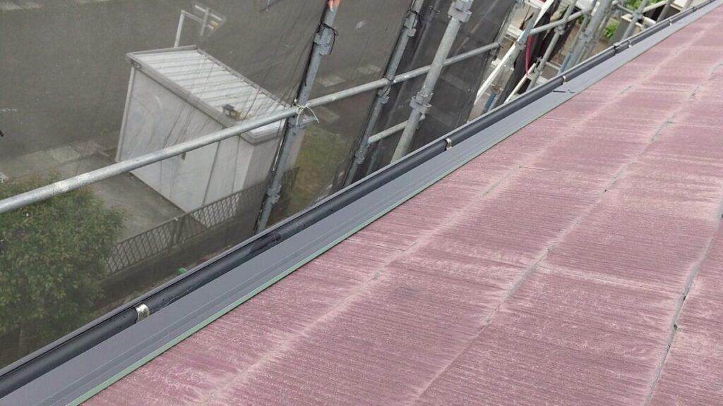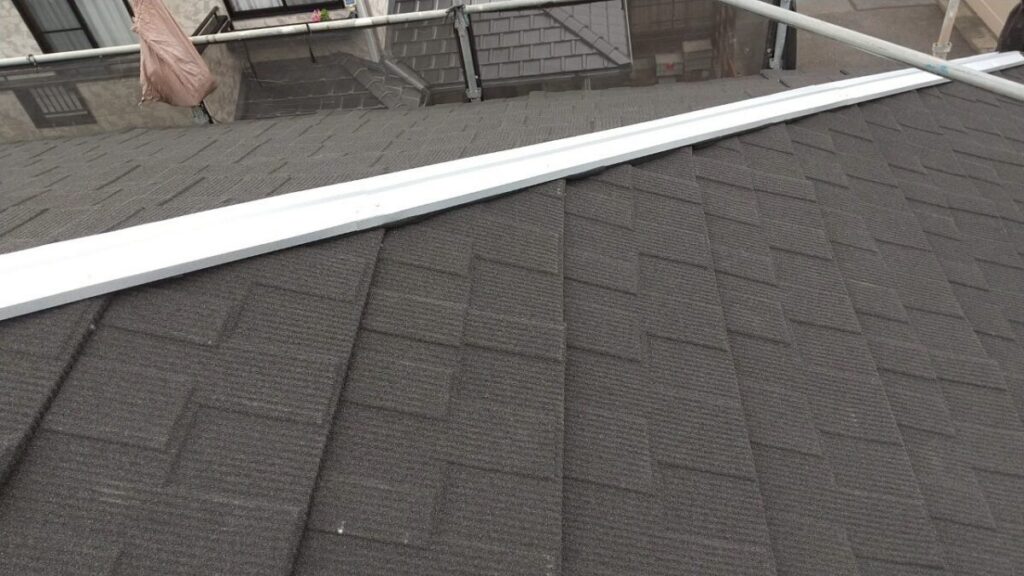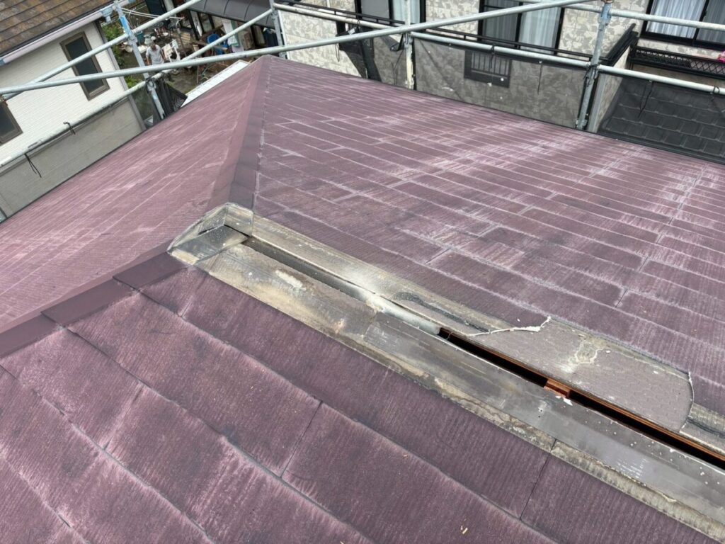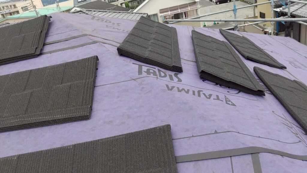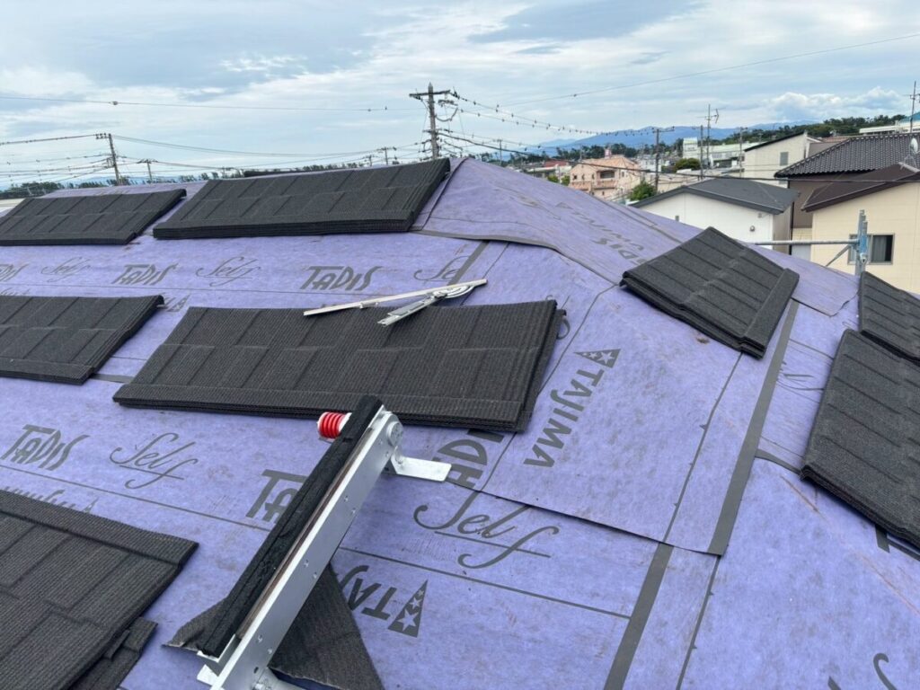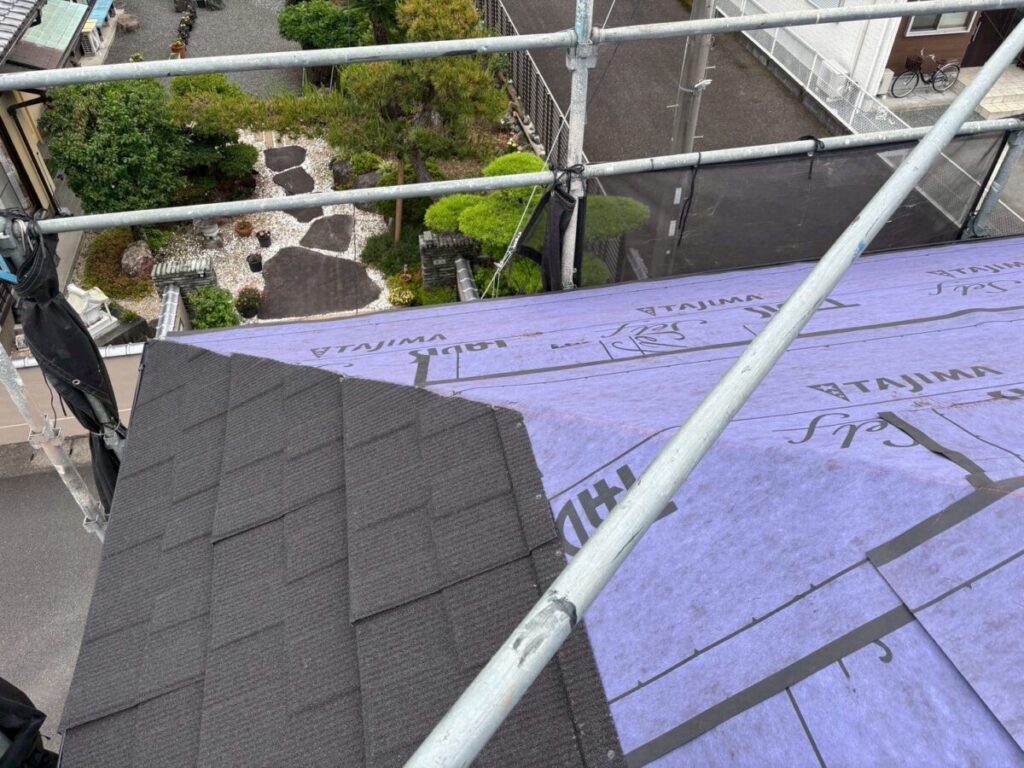 最初に棟を撤去して不陸をなくし、ルーフィング(防水シート)を張っていきます。