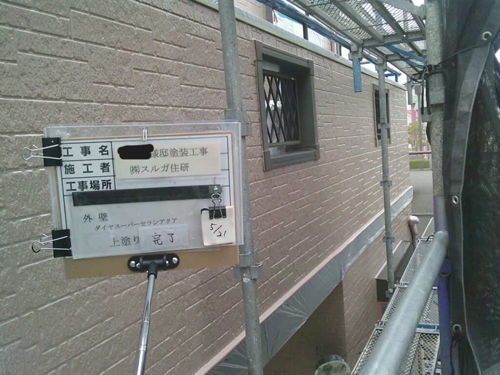 完成しました。今回の外壁塗装の塗料は高耐候性の無機塗料ダイヤスーパーセランアクアを施工しました。この無機塗料は25~28年の期待耐用年数があり、屋根材のセネターはメンテナンスフリーの屋根材になっていますのでこの組み合わせは長いライフルコストが実現できるのが魅力になっています。