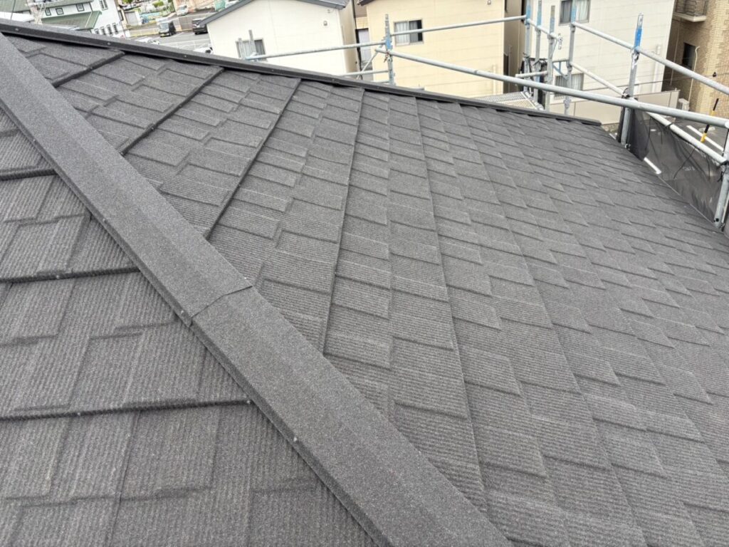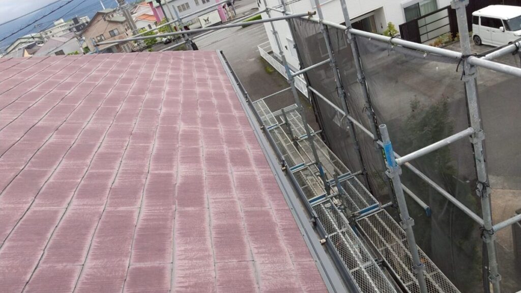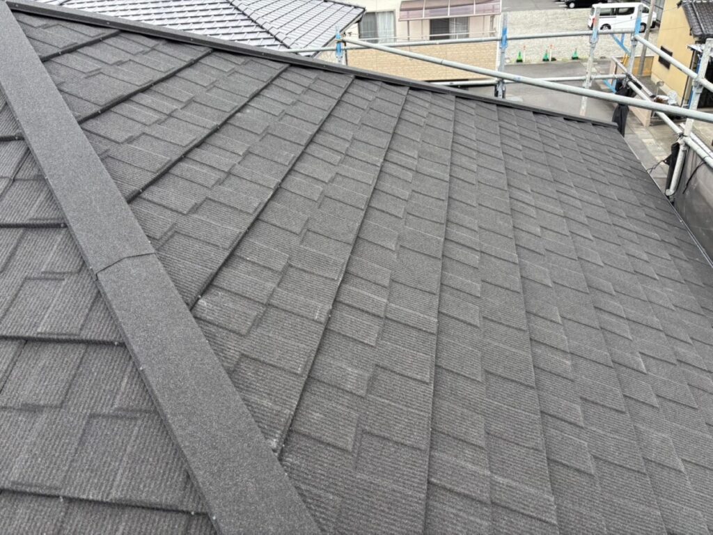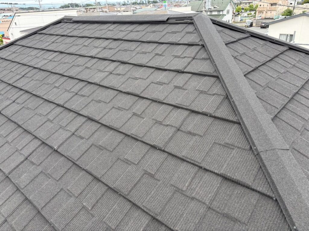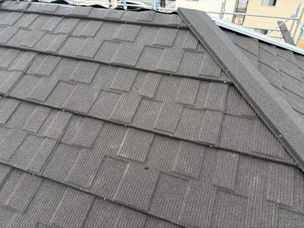 静岡県富士市で化粧スレートの上に石付ガルバリウム鋼板のセネターで重ね葺き工事を行いました。