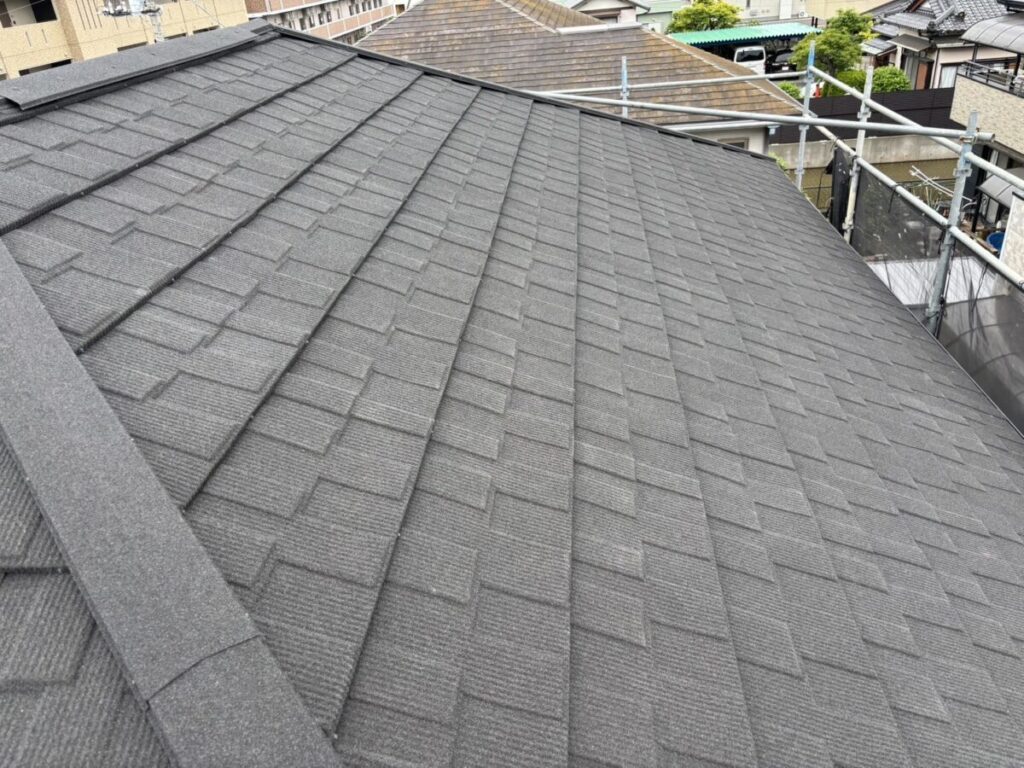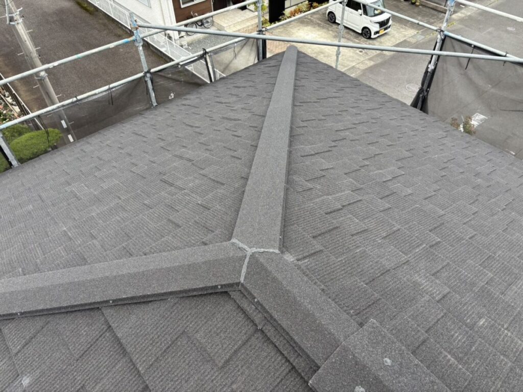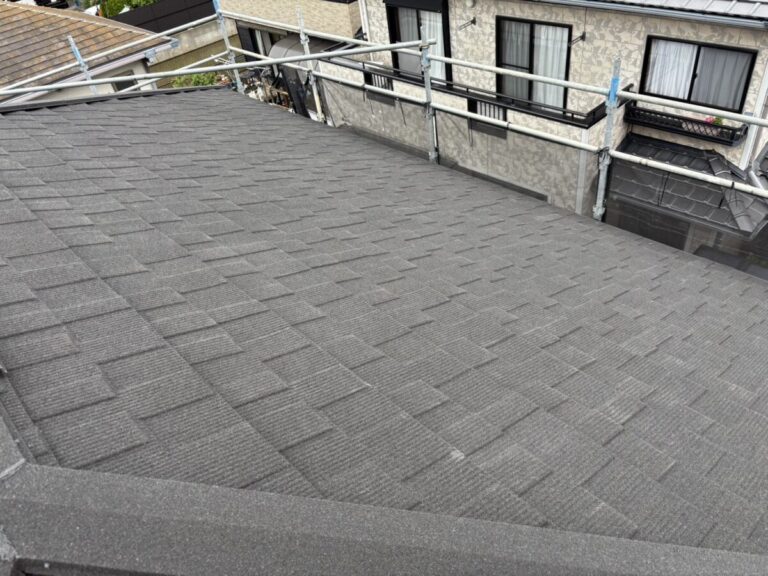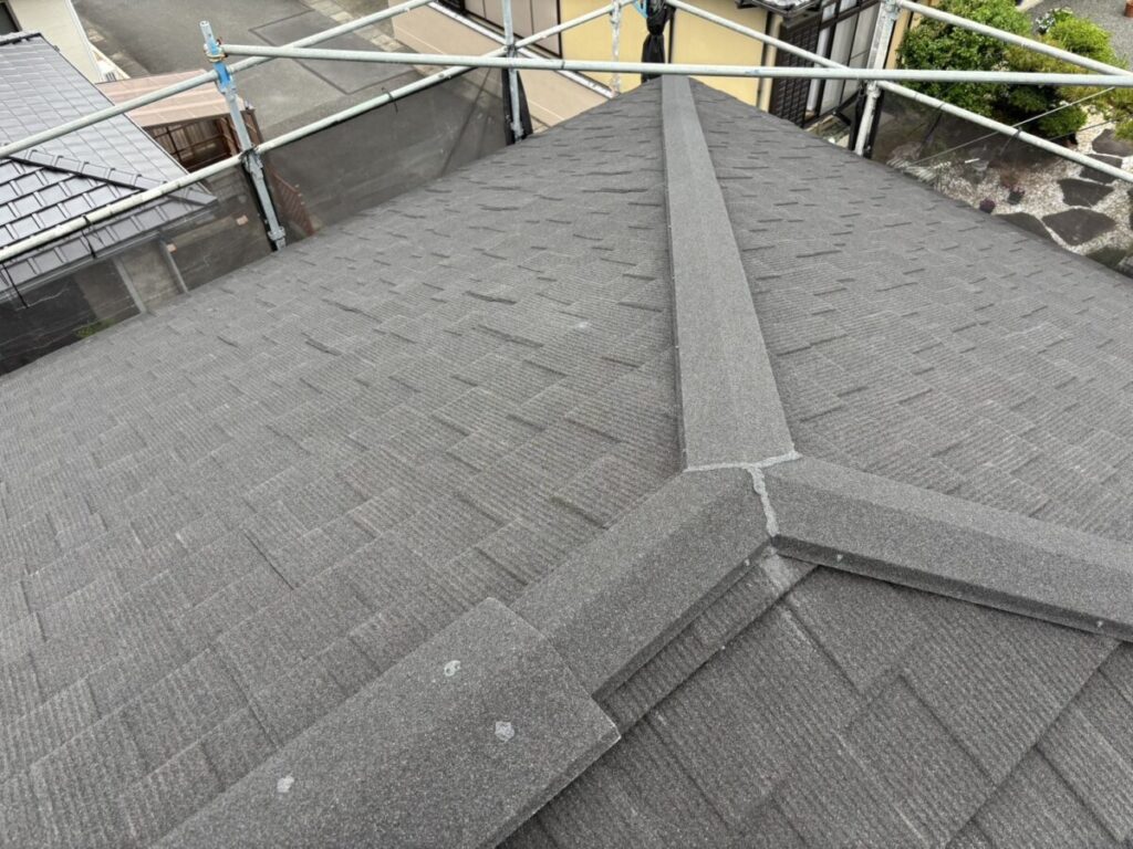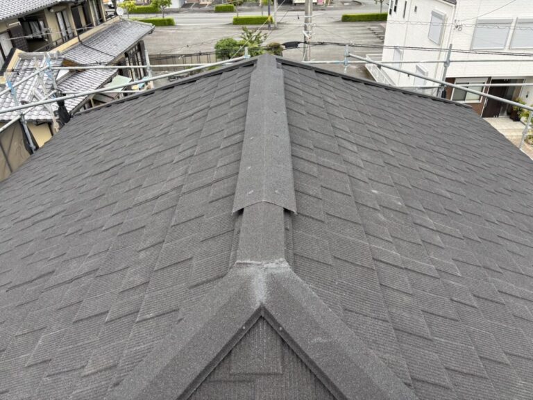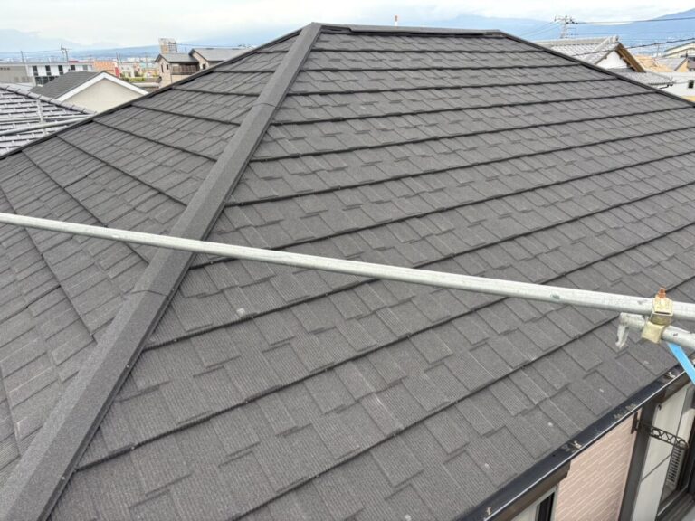 静岡県富士市で化粧スレートの上に石付ガルバリウム鋼板のセネターで重ね葺き工事を行いました。