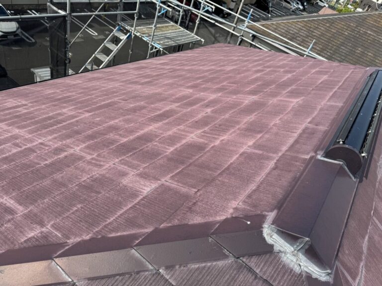 屋根カバー工法でセネター、シーリングはオートンイクシード、外壁は無機塗料施工工程