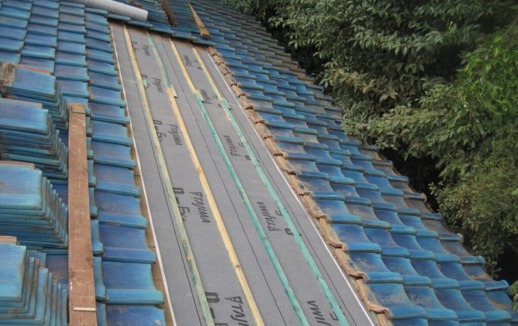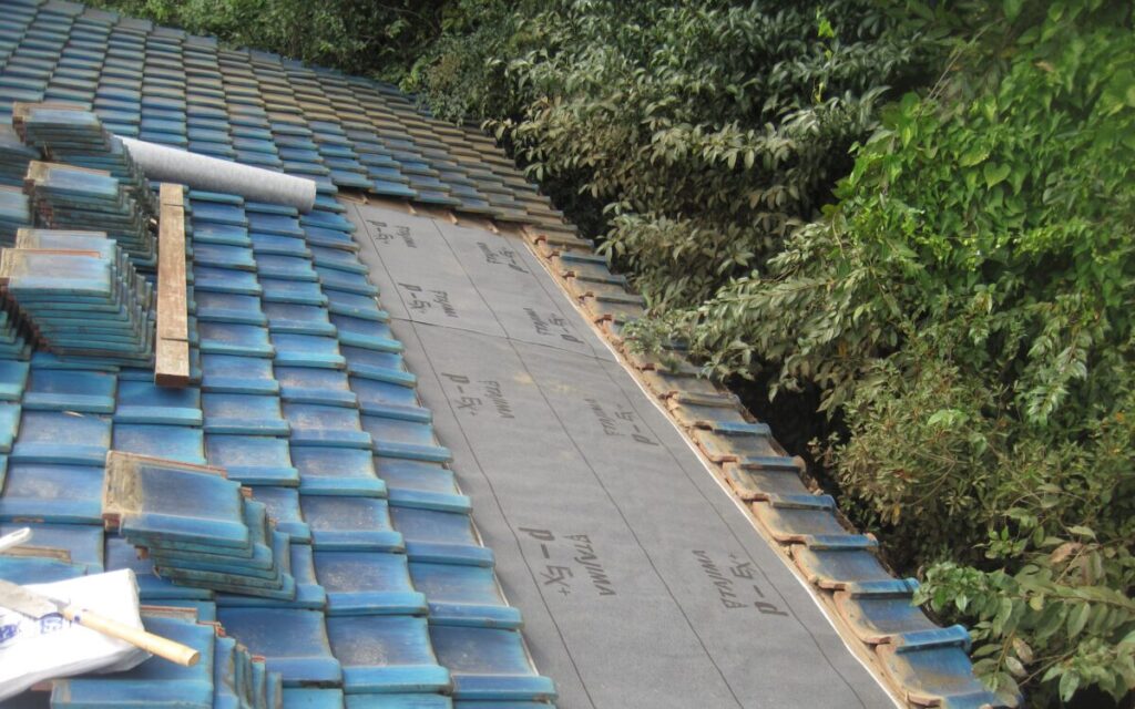 瓦の下葺き材は屋根の下に敷かれている防水シートの事をいいます。瓦葺きの場合は年代によって下葺き材が変化していますが、昔は土葺きと言って瓦の下に土を厚く敷いて雨水の浸入を防いでいましたが現在では、アスファルトルーフィングという防水シートに材質が変わりました。