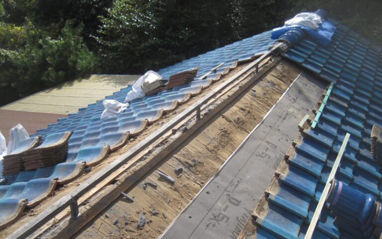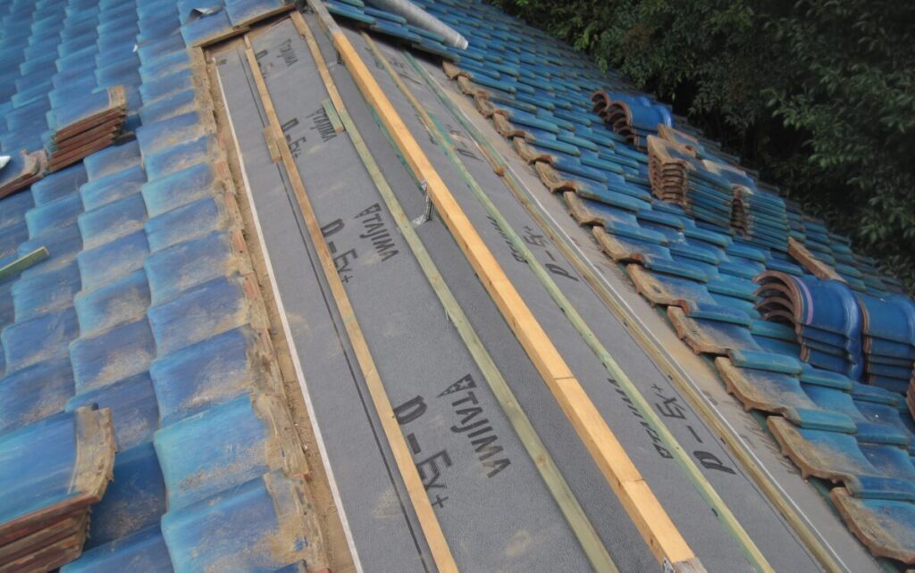 既存瓦撤去・ルーフィング張り・瓦桟取り付け