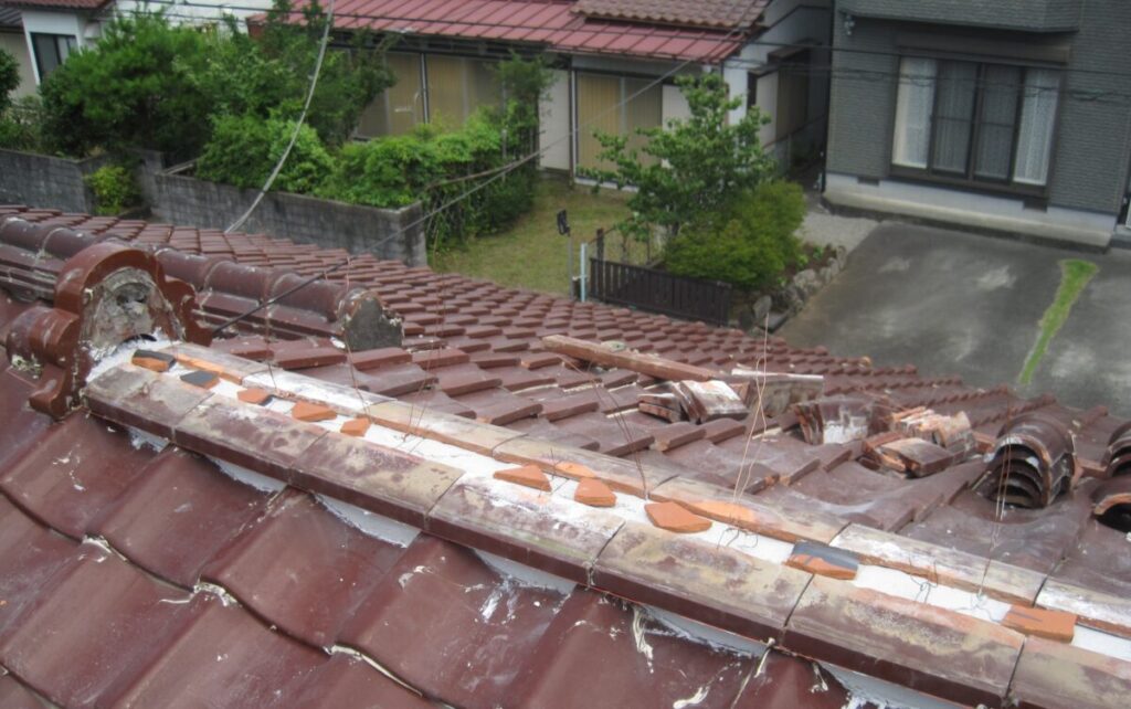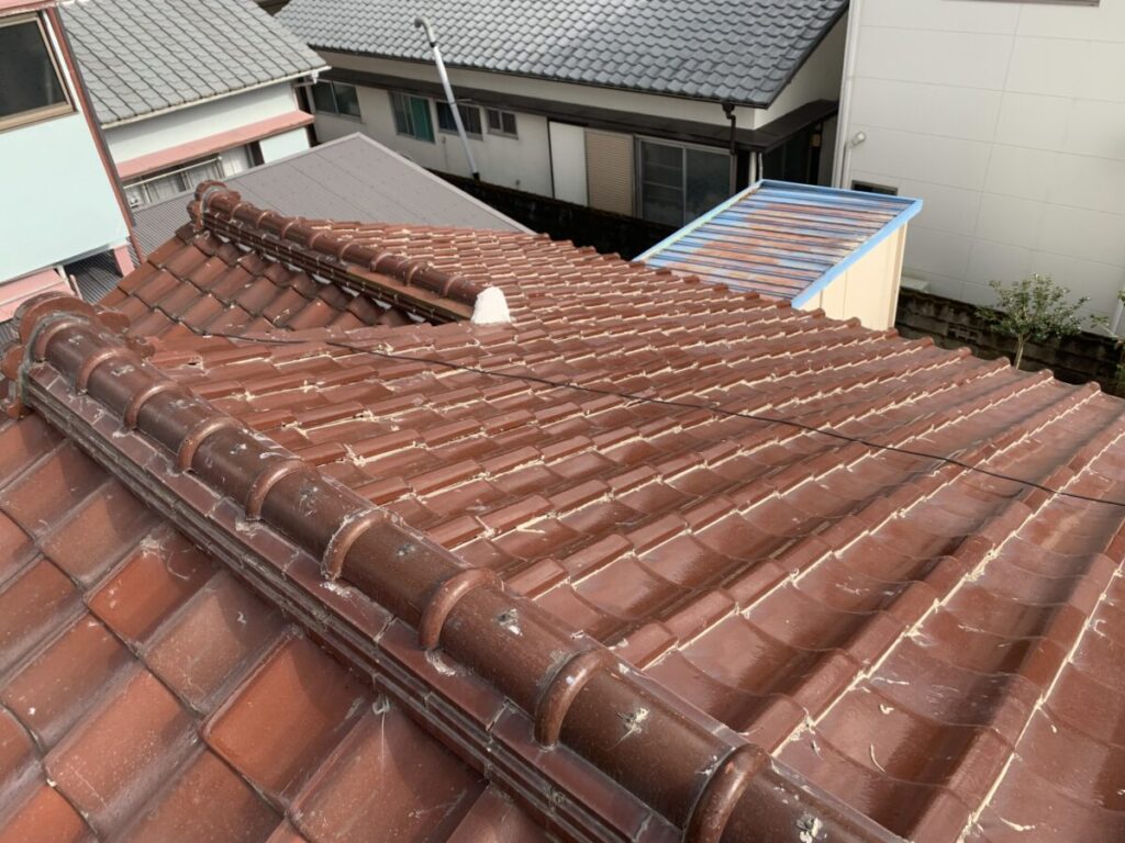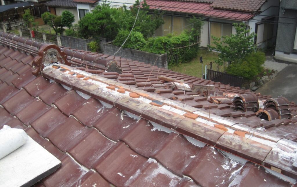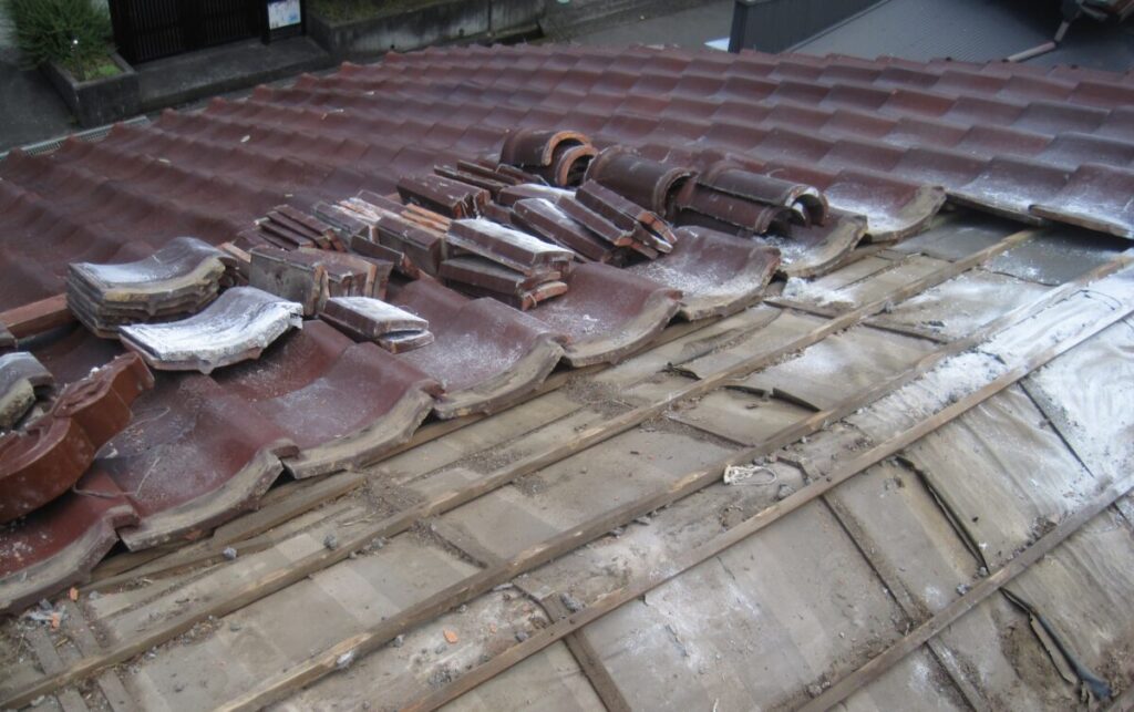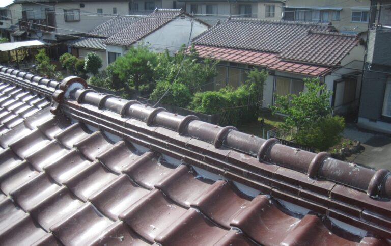 今回の屋根は、築50年以上が経過した塩焼き瓦の屋根です。昔ながらの重厚感のある瓦屋根ですが、年数が経過すると、瓦そのものだけでなく、瓦の下にある防水シートも少しずつ寿命を迎えていきます。