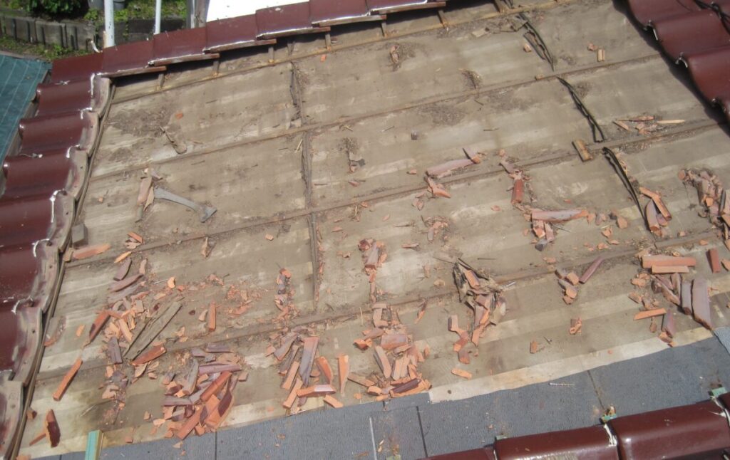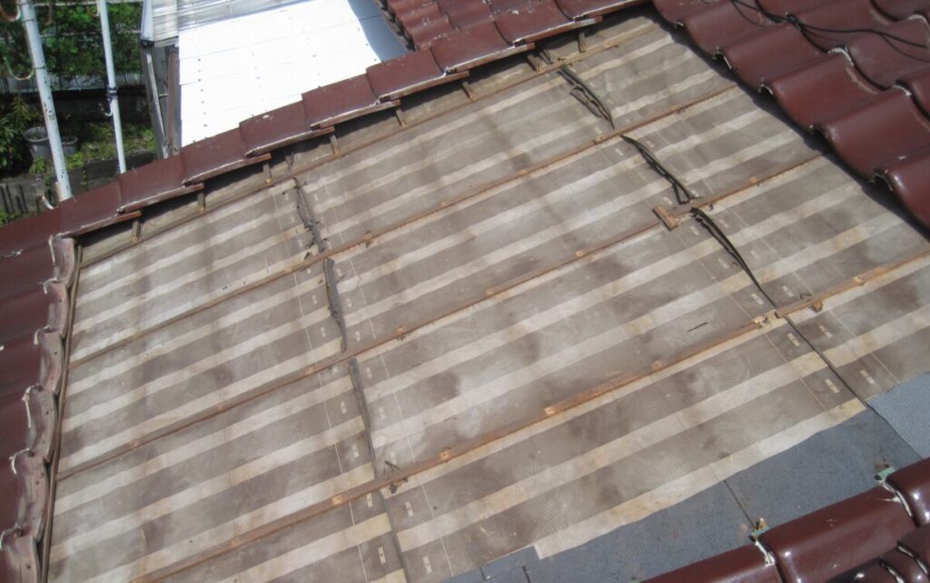 今回のような古い瓦屋根では、表面の瓦がしっかりして見えていても、下地側の防水層が限界を迎えていることが少なくありません。見た目だけでは分からない部分だからこそ、実際に瓦を剥がして確認することがとても重要です。