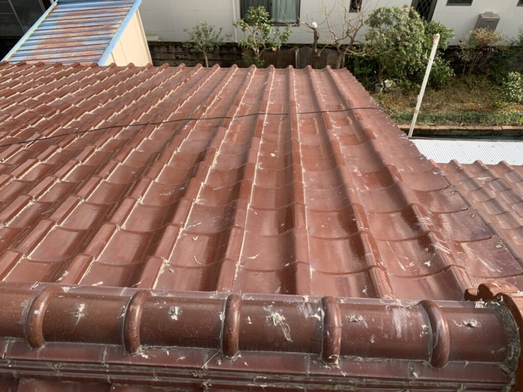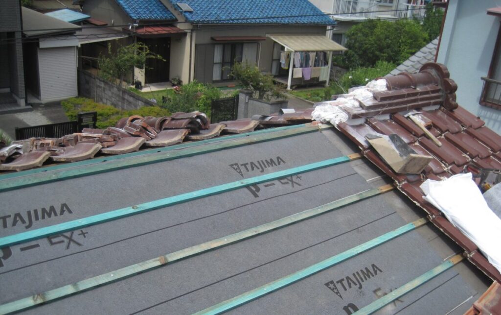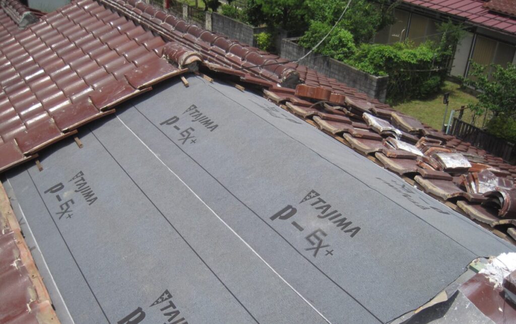 築50年以上の塩焼き瓦屋根ということもあり、今回の原因は瓦の下にある既存ルーフィングの経年劣化によるものでした。お施主様の今後の住まい方も踏まえ、全面改修ではなく、必要な範囲に絞った部分的な瓦撤去・防水シート張り替え工事をご提案し、施工させていただきました。