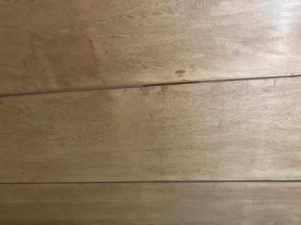 天井には雨水がまわったような雨じみが見られ、すでに雨漏りの形跡が出ている状態でした。