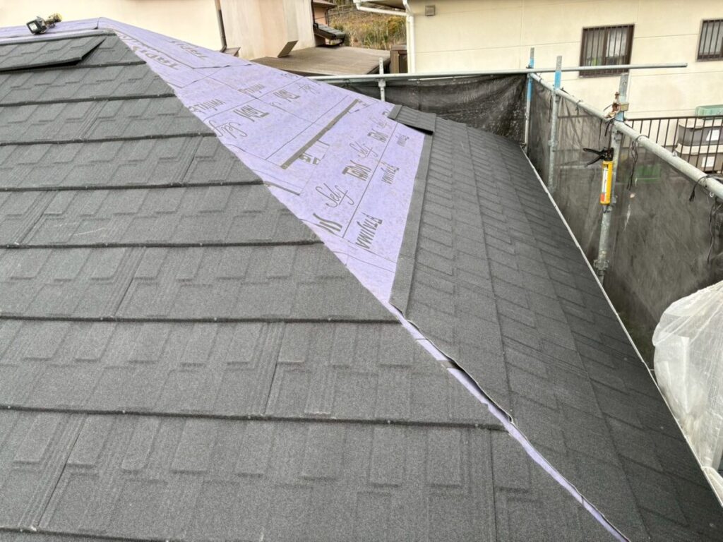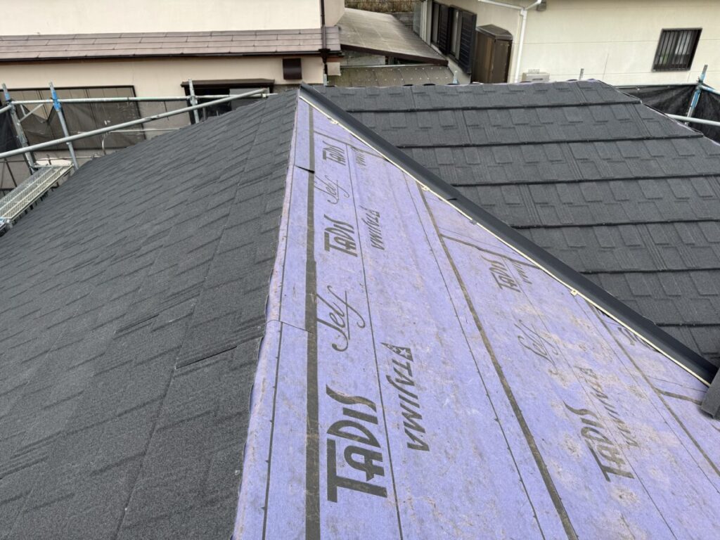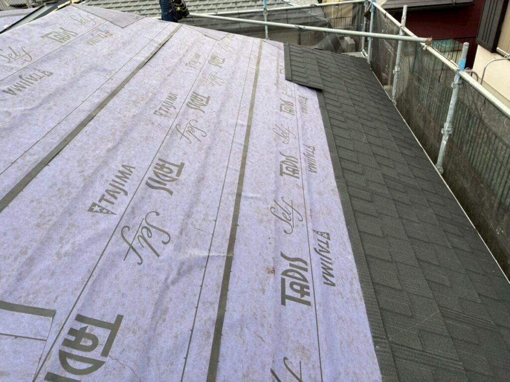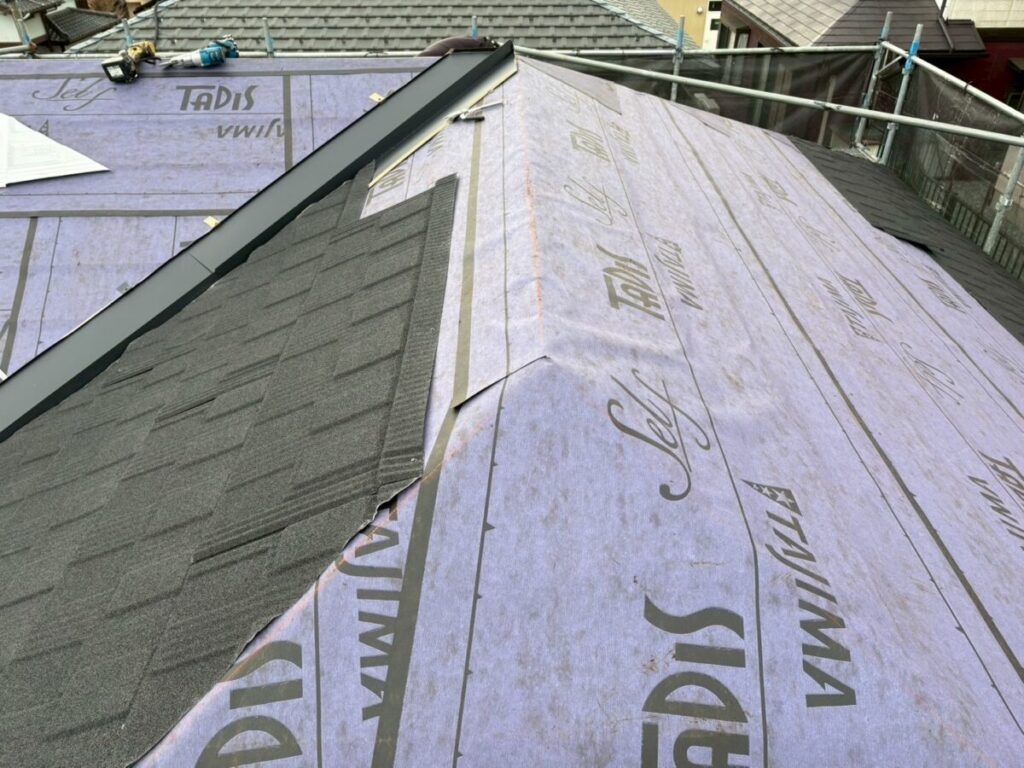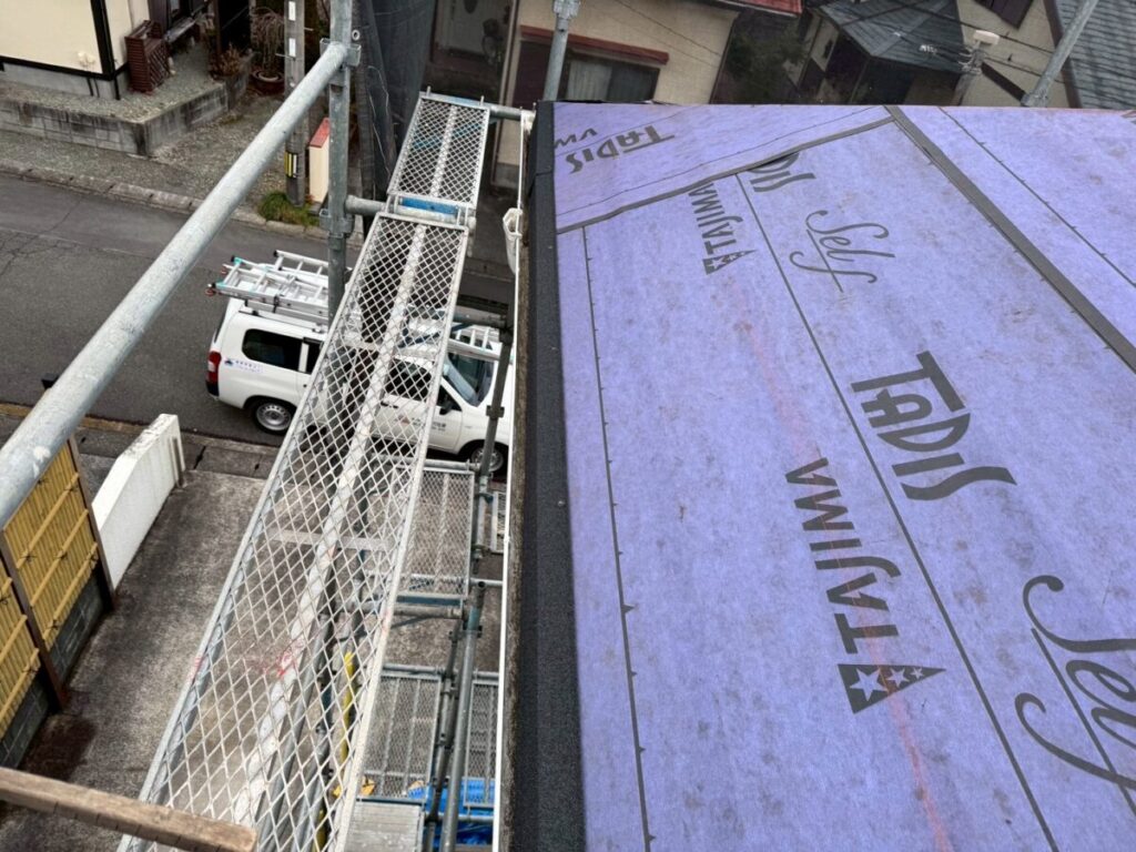 このルーフィングは、貼り直しができる施工性の良さに加え、耐候性・耐久性に優れているのが大きな特徴です。屋根材の下に隠れてしまう部分ではありますが、屋根工事において防水シートは非常に重要な役割を担っています。万が一、屋根材の隙間から雨水が入り込んだとしても、このルーフィングがしっかりと住まいを守ってくれます。見えない部分だからこそ、材料選びにはこだわりたいところです。