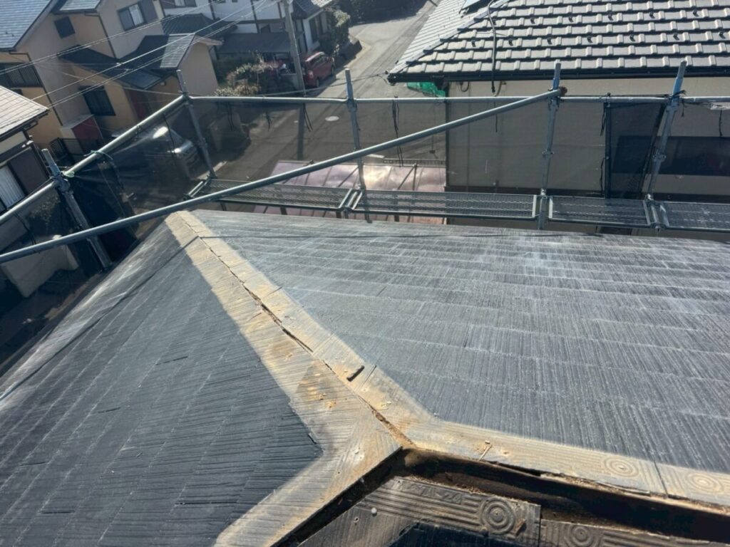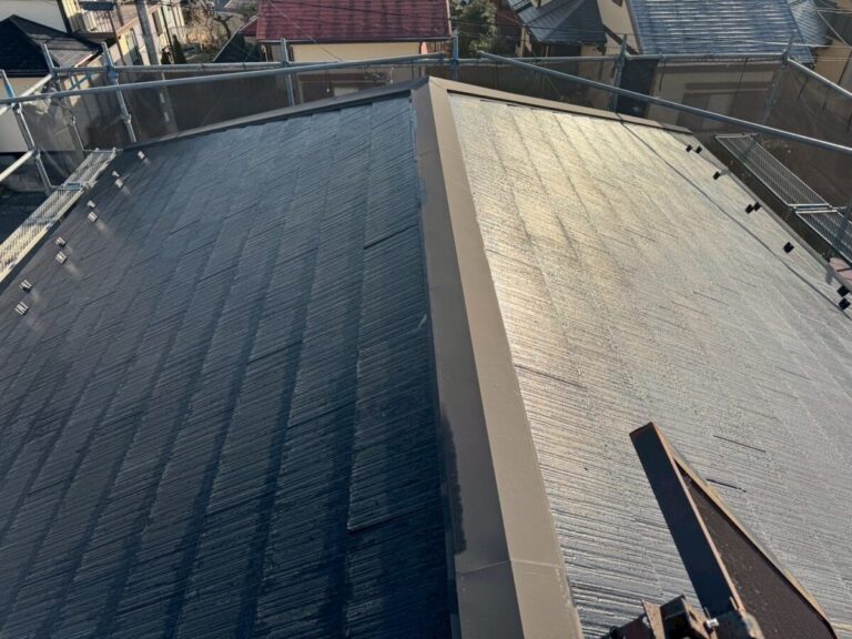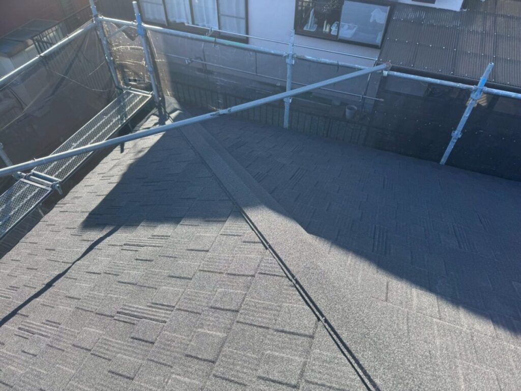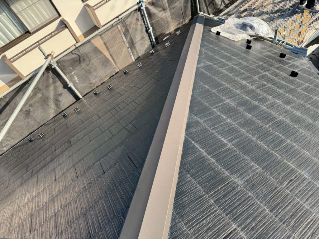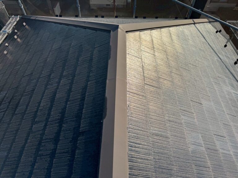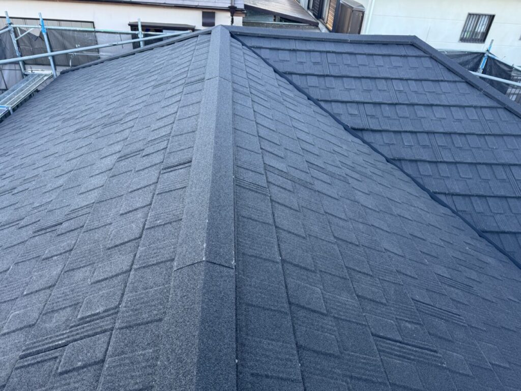 こうして、裾野市での化粧スレート屋根のカバー工法工事が無事に完了しました。既存屋根の上から施工することで、撤去費用や処分費を抑えつつ、屋根の性能をしっかり向上させることができます。見た目も大きく変わり、重厚感のあるきれいな屋根に生まれ変わりました。