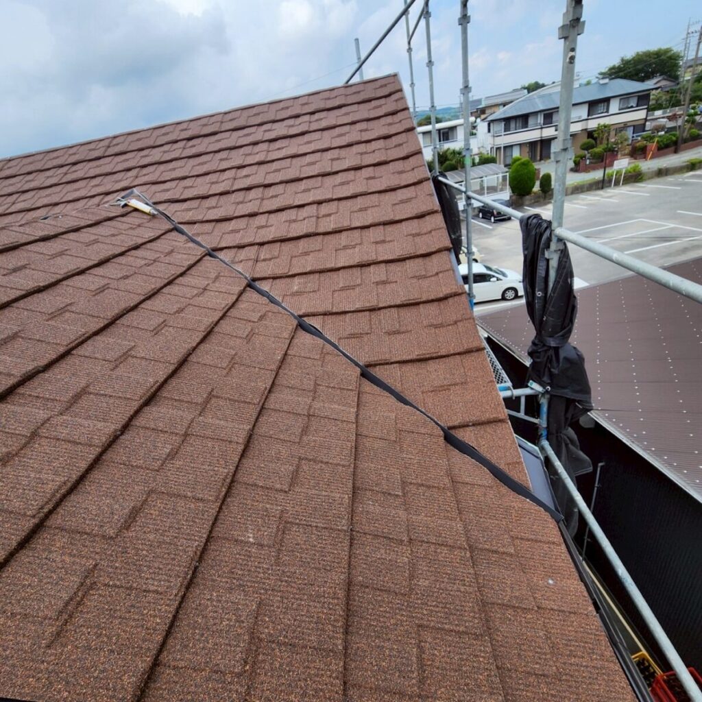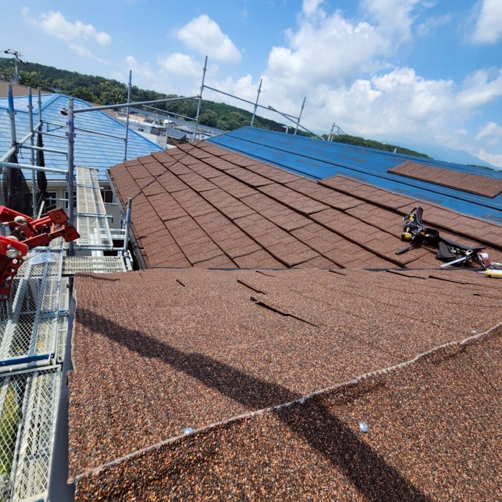 静岡県裾野市でアスファルトシングルの上に石付ガルバリウム鋼板セネターの重ね張り工事を行いました。