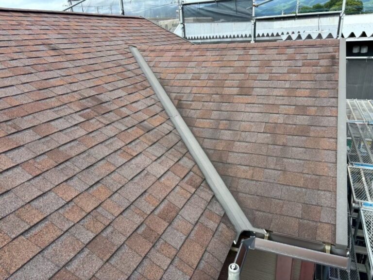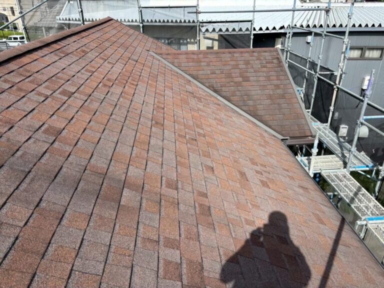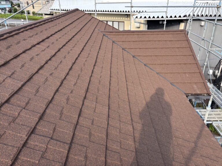 そこで今回の現場では、屋根全体をやりかえるのではなく、傷みが集中していた南面のみをカバー工法で補修しました。使用したのは、天然石粒付きガルバリウム鋼板のセネターです。施工を行わない北面のアスファルトシングルとも見た目のなじみがよく、既存屋根との相性にも配慮した材料です。既存屋根の上から新しい屋根材を重ねるカバー工法は、撤去費や処分費を抑えながら、防水性と耐久性を高められる点も大きな特長です。