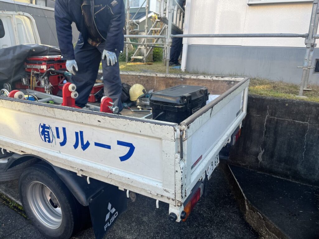 朝の現場打ち合わせ 屋根カバー工事の現場 富士宮市 屋根屋のノブ