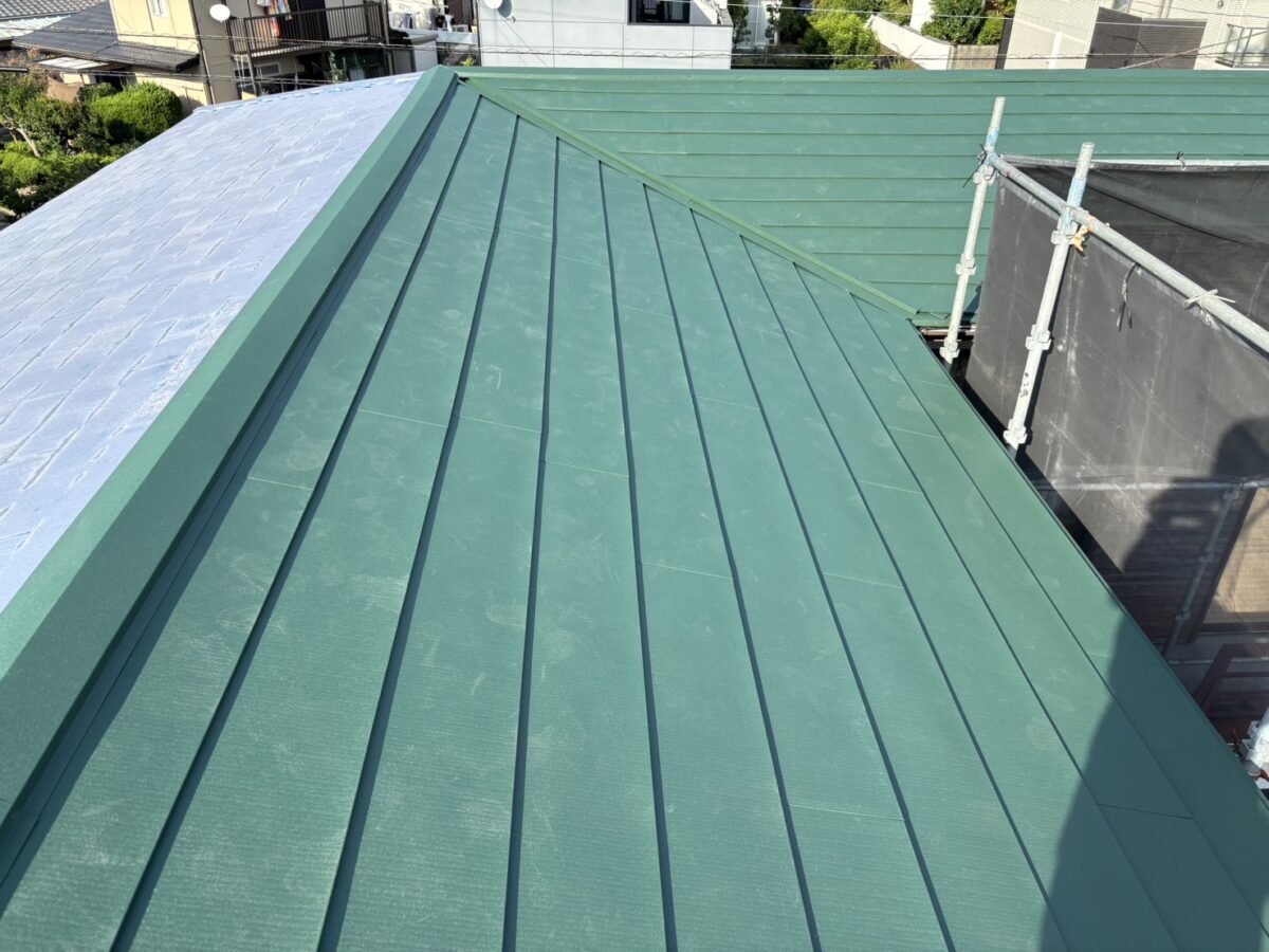 静岡県伊東市 雨漏りがしているその部分だけを屋根カバー工法で雨漏り修理 化粧スレート屋根材アーバニーの上にシルキーG2を重ね葺き工事 スルガ住研施工